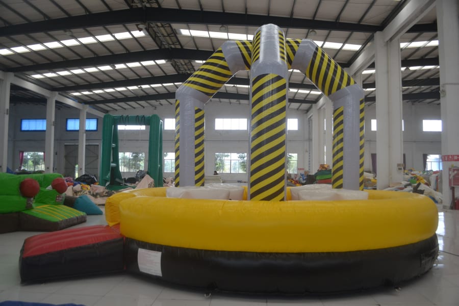 This Garden Game consists of an enclosed bounce area with to podiums. 2 players try and knock each other of the podium with a large inflatable ball. The player who stays on the podium the longest will be a winner.