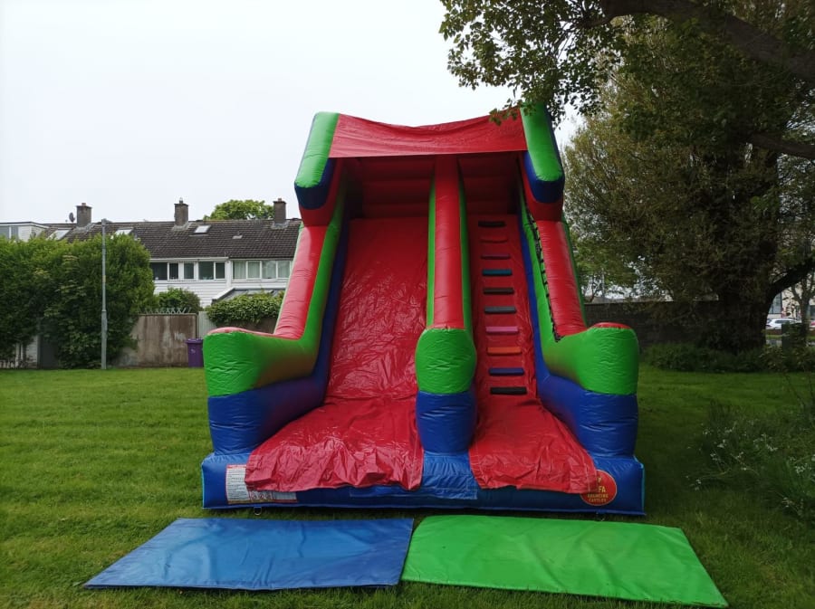 Our Marvel Giant Slide is 12ft Wide 25ft long 20ft high, the Marvel Giant Slide suits kids from 5 years and up. If you are entertaining a large group of kids we recommend the Marvel Giant Slide.